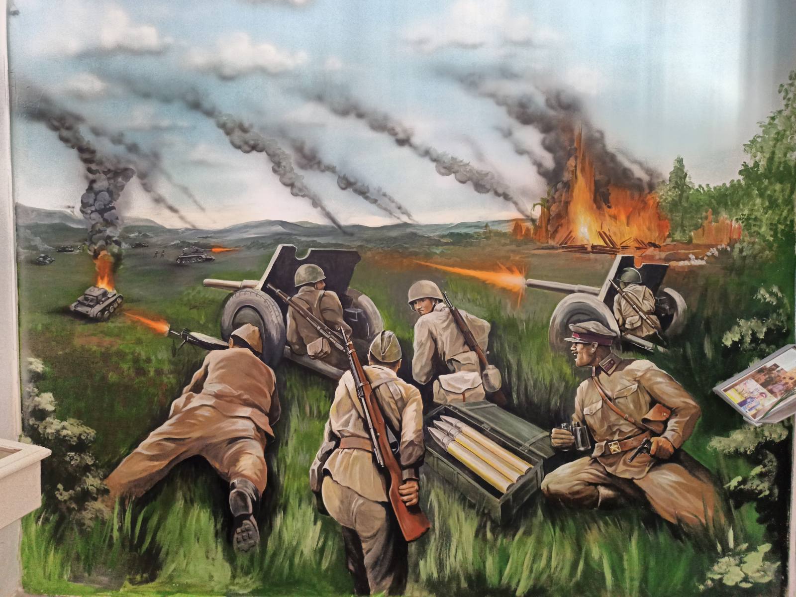 Материалы размещены на стендах, часть экспонатов помещена в витрины, имеется панорама «Освобождение села».
