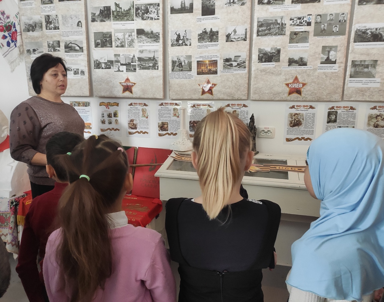 - осуществление воспитательной, учебной и развивающей деятельности музейными средствами (проведение экскурсий, классных часов, уроков Мужества, бесед, выставок, Вахт памяти);